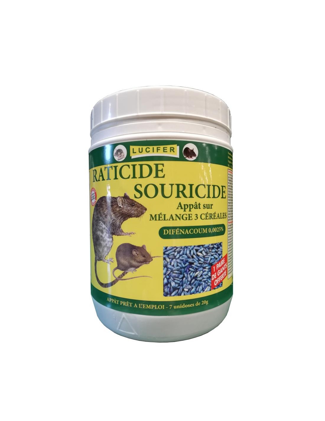 Ce raticide, souricide est un appât prêt à l'emploi permettant d'éliminer efficacement les rats et les souris. Conditionné dans des sachets individuels, il peut être utilisé à l'intérieur (bâtiments privées, greniers…) ou à l'extérieur. L'appât est conçu avec du Difénacoum qui tue les rongeurs en perturbant le mécanisme de coagulation du sang. Il agit avec un effet retard et n'éveille pas la méfiance des rongeurs. Ils s'affaiblissent, se cachent et meurent en quelques jours, loin de la colonie.