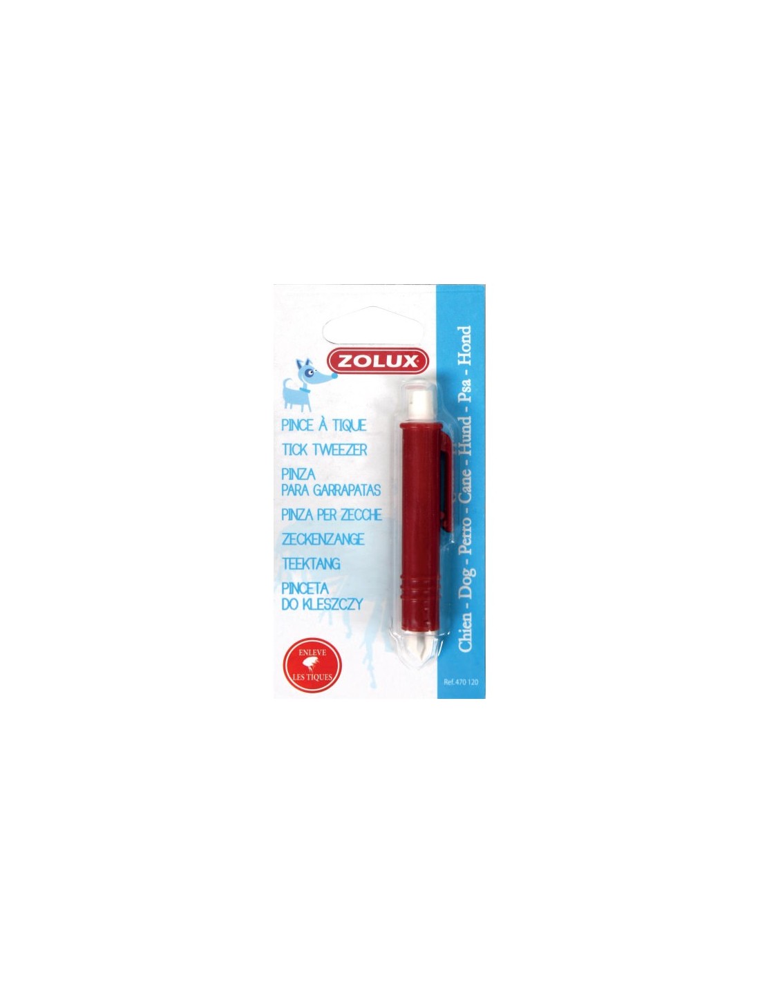 La Pince à Tique s’utilise pour retirer efficacement les tiques de la peau de votre chien. Pour retirer le parasite, vous devez saisir le corps de la tique sans l’écraser et tirer pour extraire la tique en entier (tête et rostre). Il est recommandé de désinfecter la zone après l’extraction de la tique.