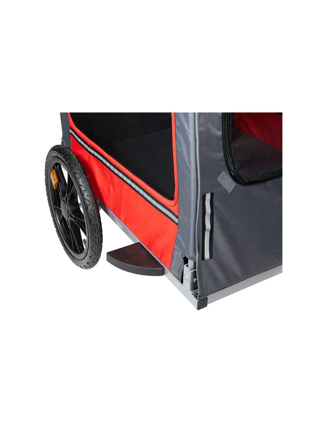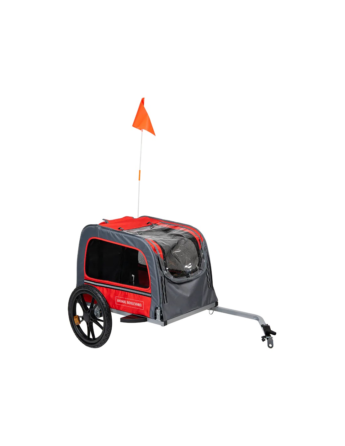 La remorque à vélo pour chien Animal Boulevard a une entrée basse, ce qui facilite l'accès des chiens. De plus, les ailettes en plastique supplémentaires garantissent que vous ne pouvez pas endommager les pneus pendant le cyclisme. Il arrive régulièrement que des gens heurtent un poteau en faisant du vélo, car ils le dépassent trop court. L'aileron se trouve à gauche et à droite et empêche cela. Vous êtes clairement visible, car la remorque à vélo est équipée de réflecteurs sur les côtés.