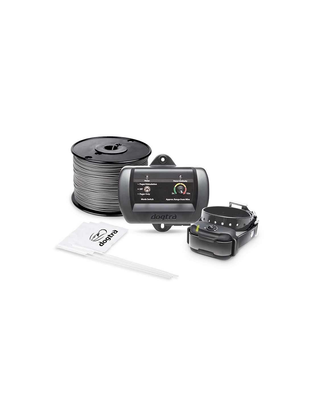 La clôture antifugue Dogtra E-FENCE 3500 est une barrière anti-fugue qui empêche votre chien de fuguer sans l'utilisation d'une barrière conventionnelle qui peut être endommagée par le chien ou franchie par dessus ou par dessous. L’étendue du champ signalétique peut être facilement ajustée avec l'émetteur mural. Le niveau de stimulation électrostatique peut être ajusté individuellement sur chaque collier-récepteur avec le bouton de réglage d’intensité. En mode “Pager + Stimulation”, votre chien recevra une vibration (Pager) silencieuse, suivie d’une stimulation électrostatique à l’approche de la barrière invisible. En mode “Pager Only”, votre chien recevra uniquement la vibration (Pager) silencieuse