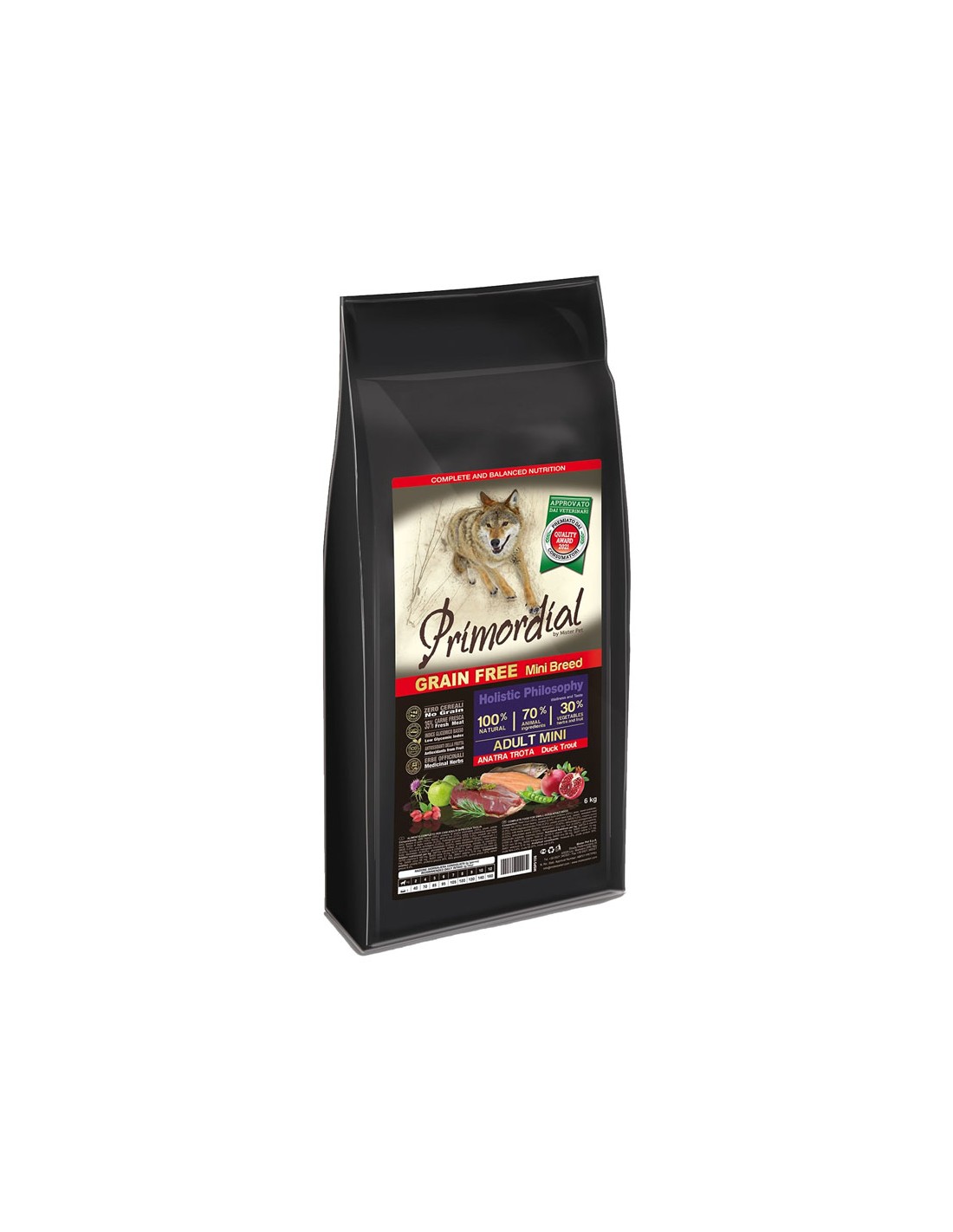 Croquettes Primordial sont un aliment complet et équilibré pour votre chien adulte de petite taille. Composées d’aliments 100% naturels , les croquettes Primordial apportent 35% de viande fraîche, 55% de protéines animales et 30% de légumes et fruits et aucunes céréales. Tous les aliments composant ces croquettes ont été sélectionnés avec soin pour garantir une alimentation saine et équilibrée pour votre chien. Ce mélange est recommandé pour les chiens ayant des sensibilités digestives telles que des intolérances ou allergies au gluten.