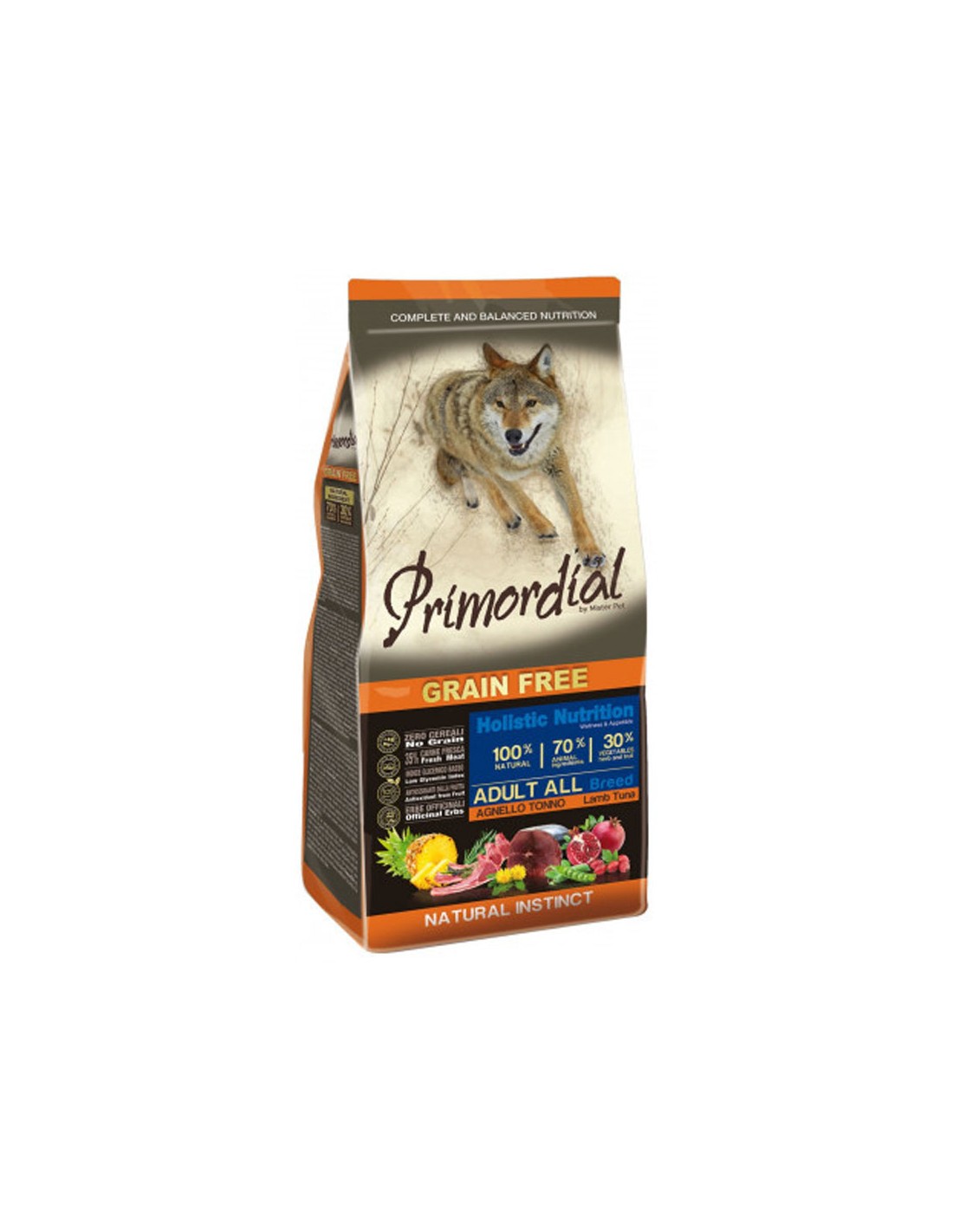 Composées d’aliments 100% naturels, les croquettes Primordial apporte 35% de poisson frais, 70% des ingrédients sont d'origine animale et contient 30% de fruits, de légumes et d'herbes médicinales. Tous les aliments composant ces croquettes ont été sélectionnés avec soin pour garantir une alimentation saine et équilibrée pour votre chien. Basée sur deux sources de protéines animales : le thon et l'agneau, la croquette Primordial Grain Free permet de diminuer le risque de développement d'intolérance.