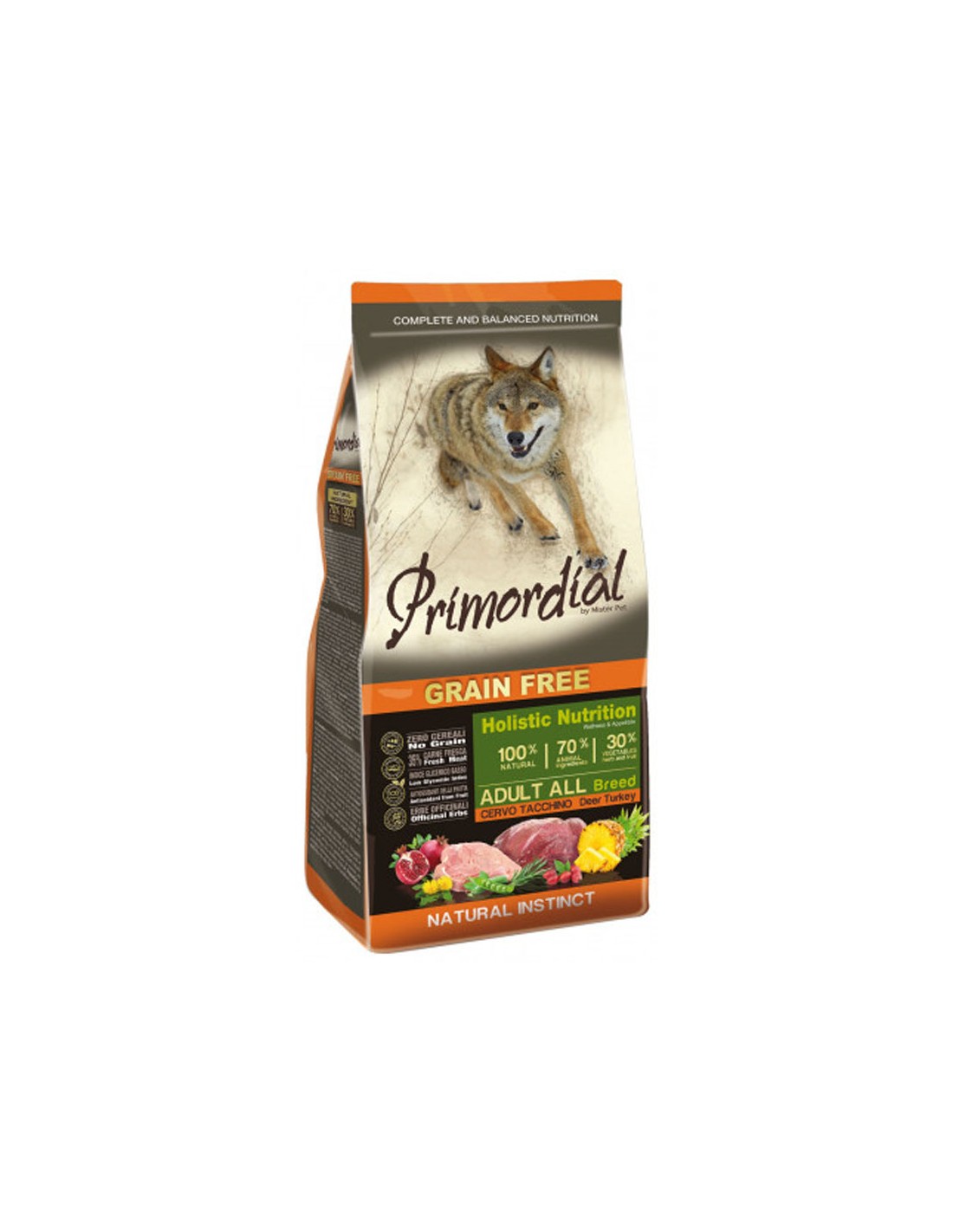 Les croquettes Primordial sans céréales sont un aliment complet et équilibré pour votre chien adulte (à partir d'un an). Composées d’aliments 100% naturels, Primordial apporte 35% de viande fraîche et 70% des ingrédients sont d'origine animale. Tous les aliments composant ces croquettes ont été sélectionnés avec soin pour garantir une alimentation saine et équilibrée pour votre chien. Ce mélange est recommandé pour les chiens ayant des sensibilités digestives telles que des intolérances ou allergies au gluten.