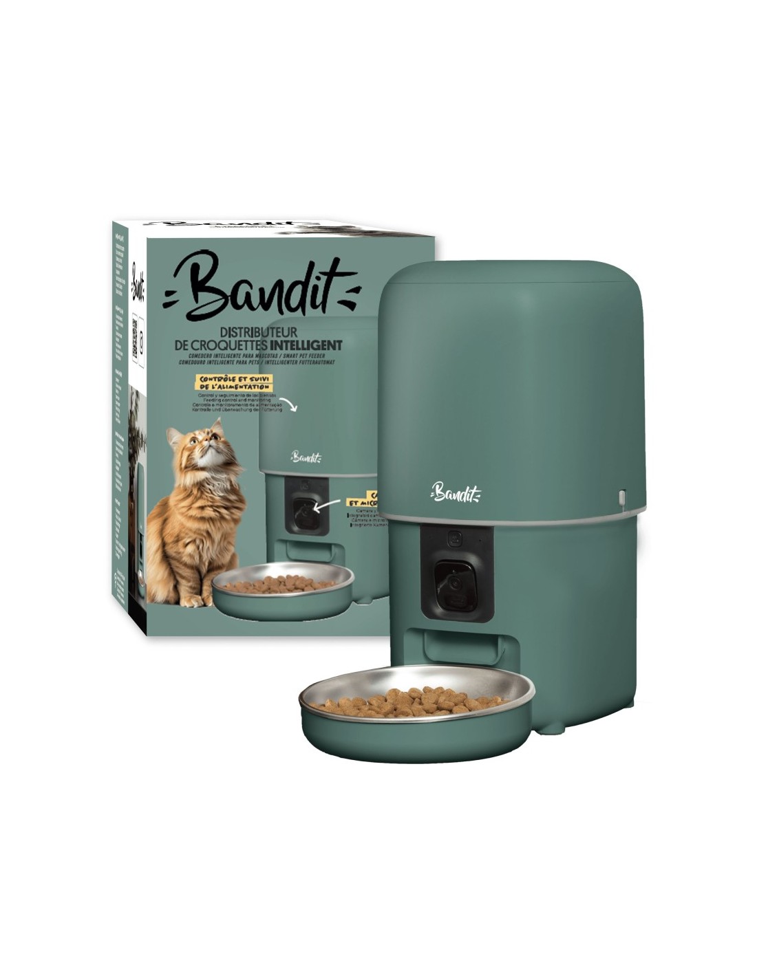 Que vous soyez au travail, en déplacement ou simplement adepte des journées sans contraintes, le distributeur de croquettes Bandit prend le relais pour offrir à votre animal une alimentation régulière, saine et bien dosée.