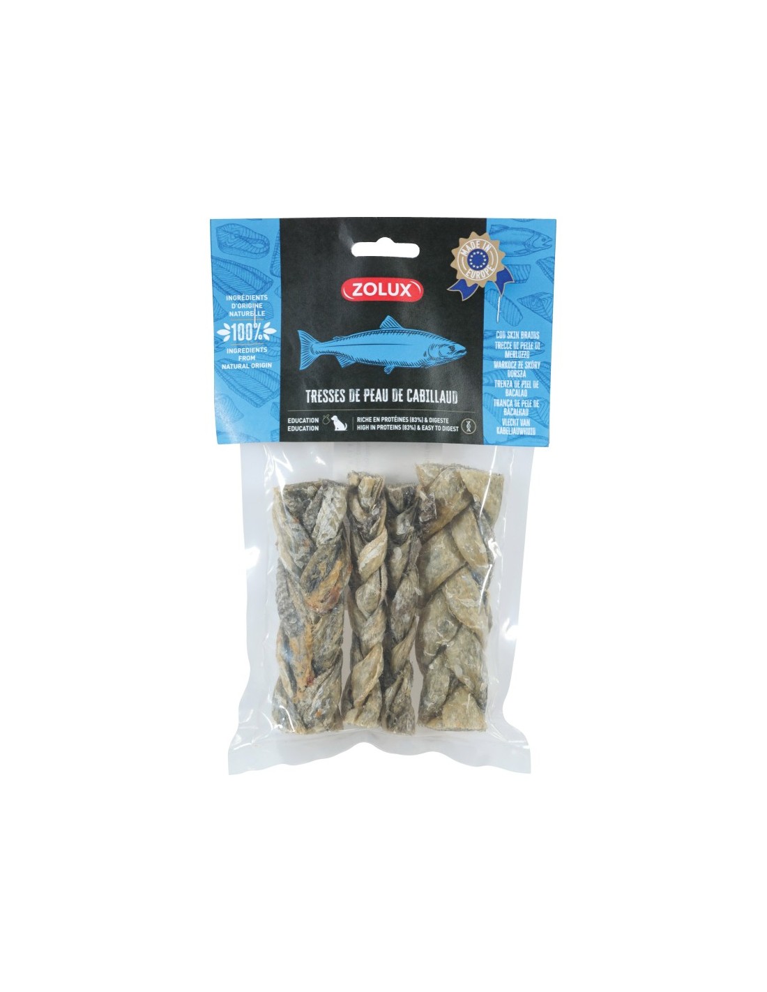 La friandise Tresse de peau de cabillaud pour chien de la marque Zolux est idéale pour offrir en récompense à votre fidèle compagnon.
