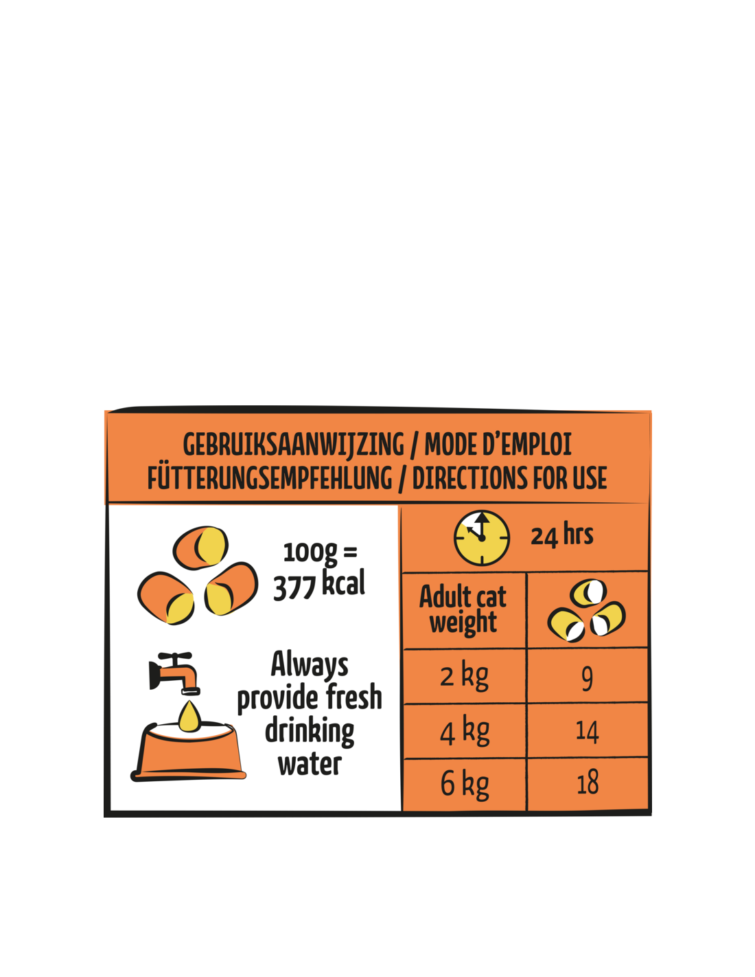 protéines de volaille déshydratées (y compris 20 % de poulet), maïs*, blé*, protéine de maïs, amidon de pois*, graisse de volaille, cellulose (4,0 %), protéines animales hydrolysées, substances minérales (y compris 0,6 % d'hexamétaphosphate de sodium), herbe à chat séchée* (0,5 %), levure de bière déshydratée*