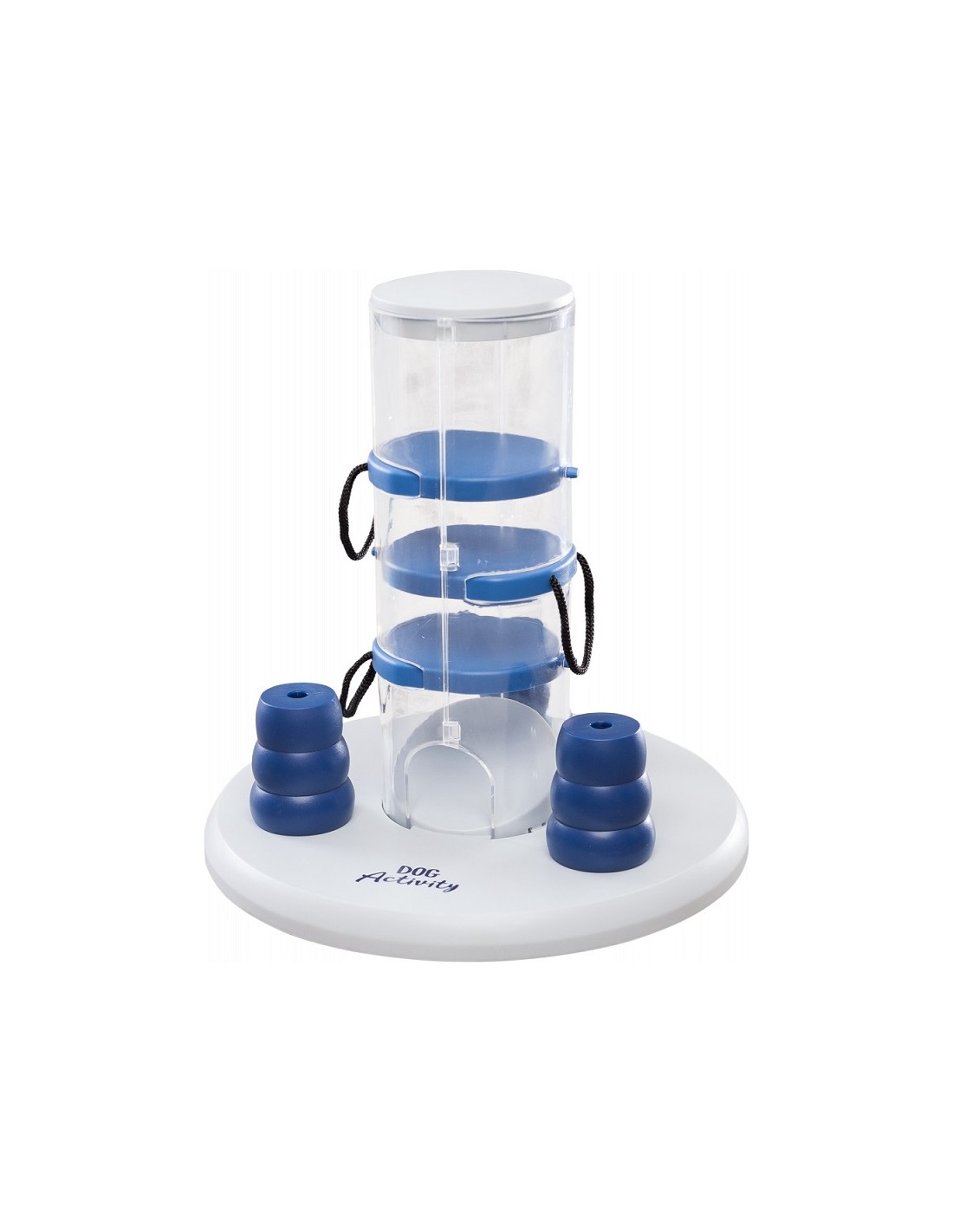 Les chiens sont des animaux très intelligents et curieux qui aiment être occupés. La "Tour de jeu" est particulièrement adaptée aux chiens avancés. Elle se compose d'une tour avec trois tiroirs et trois cônes supplémentaires, sous lesquels vous pouvez cacher des friandises de votre choix. Votre compagnon essaie ensuite de tirer les tiroirs avec sa patte ou son museau et de renverser les cônes pour obtenir les friandises convoitées.