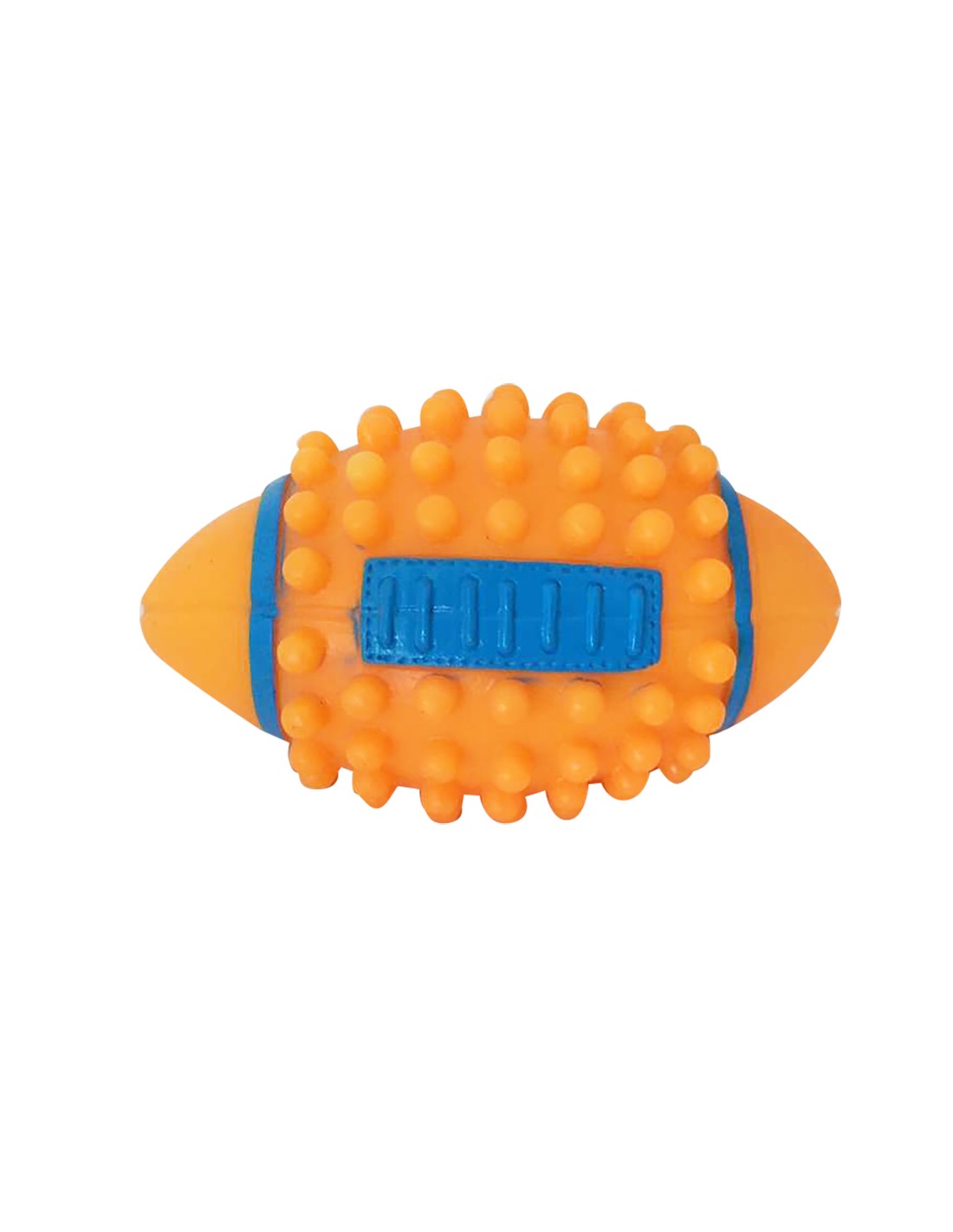 Jouet pour chien balle de rugby en vinyle avec picots.