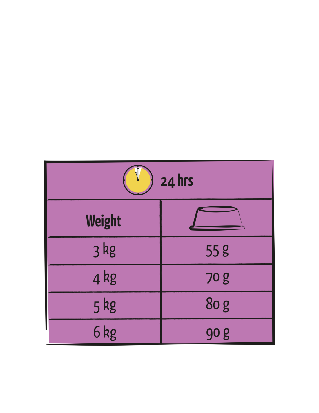 protéine 34,0%, teneur en matières grasses 9,0%, cellulose brute 4,0%, cendres brutes 8,5%, calcium 1,1%, phosphore 1,0%, taurine 0,2%
