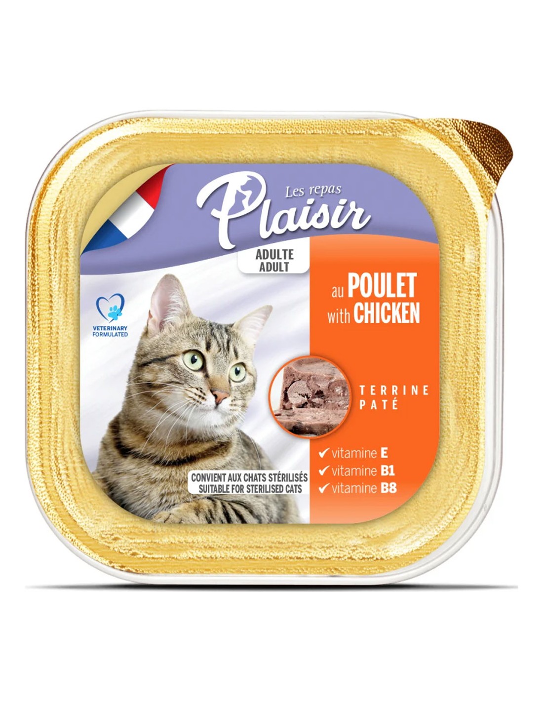 Les pâtés Les Repas Plaisir au Poulet sont des repas complets et se présentent sous la forme de terrines moelleuses avec des morceaux. Leur taux de protéine est de 10%, ce qui est excellent pour satisfaire les besoins nutritionnels de votre petit carnivore. Ils sont parfaitement adaptés pour les chats adultes stérilisés. Votre chat saura les apprécier.