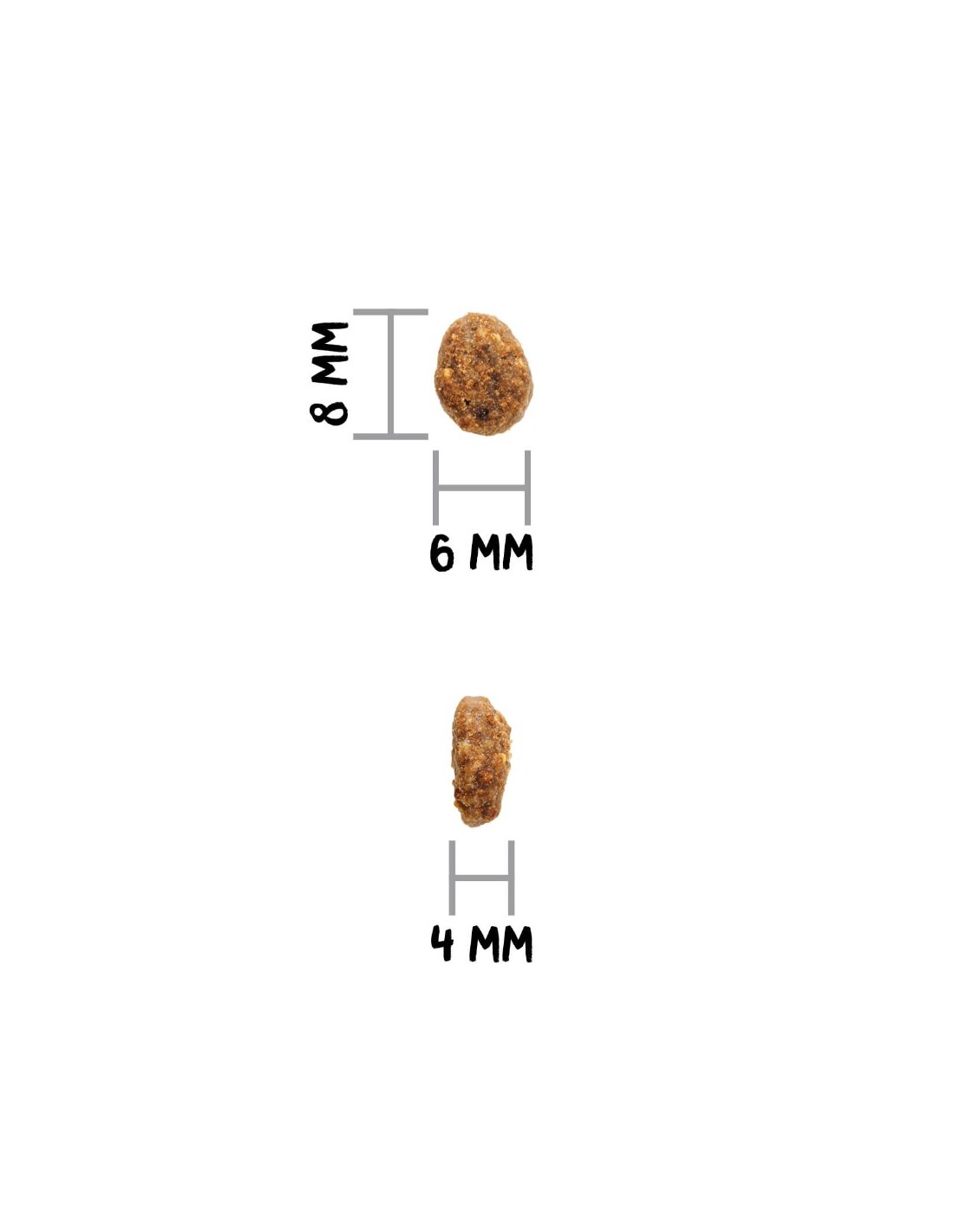 Protéine : 30 %, teneur en matières grasses : 14 %, cellulose brute : 2,5 %, matière inorganique : 8,5 %, humidité : 8 %, oméga 6 : 2,2 %, oméga 3 : 0,4 %, calcium : 1,5 %, phosphore : 1,1 %. Énergie métabolisable : 3 770 kcalkg.