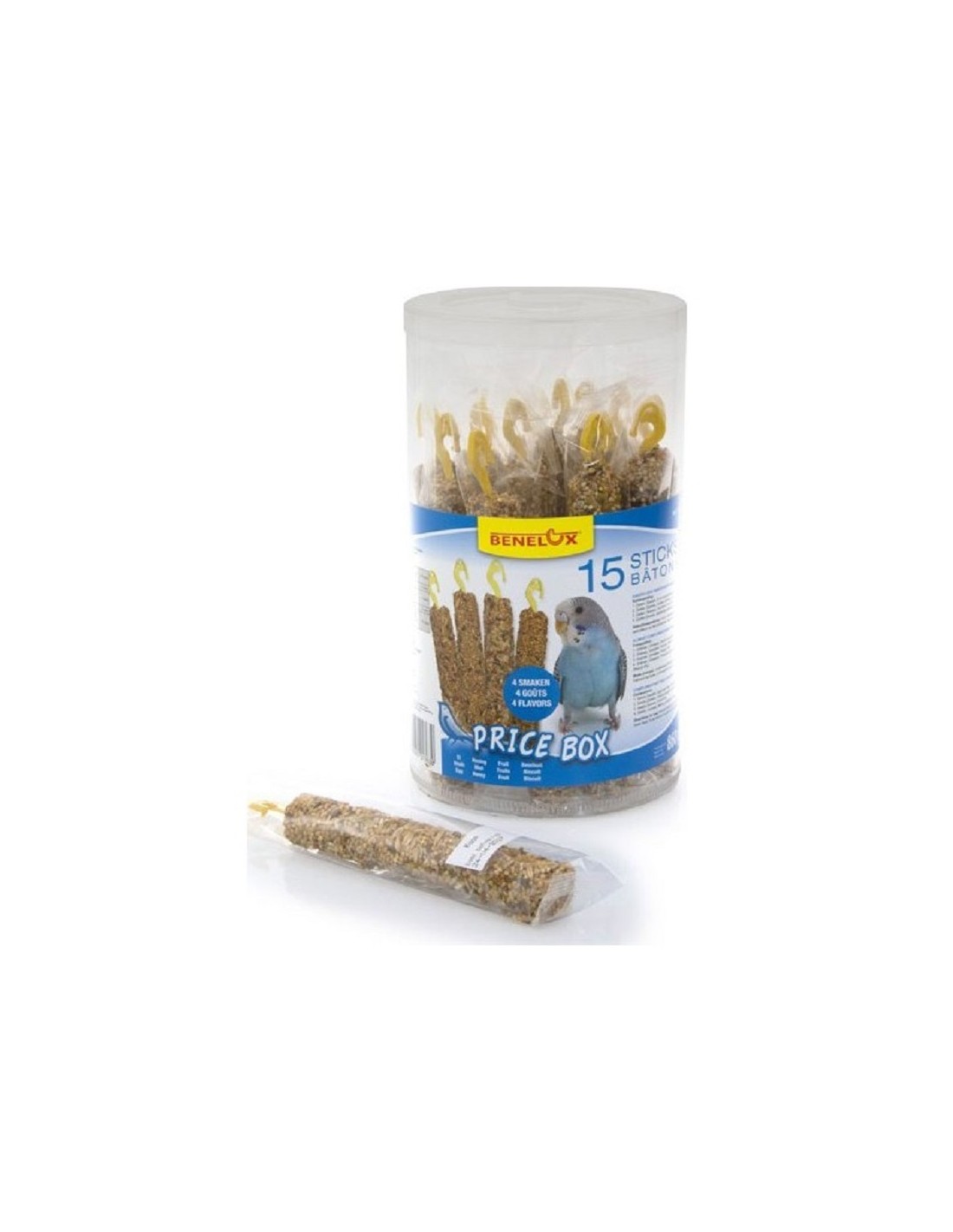 Image d'exemple ! Le produit et de couleur blanche avec système d'accroche a la cage et un perchoir en bas fournis