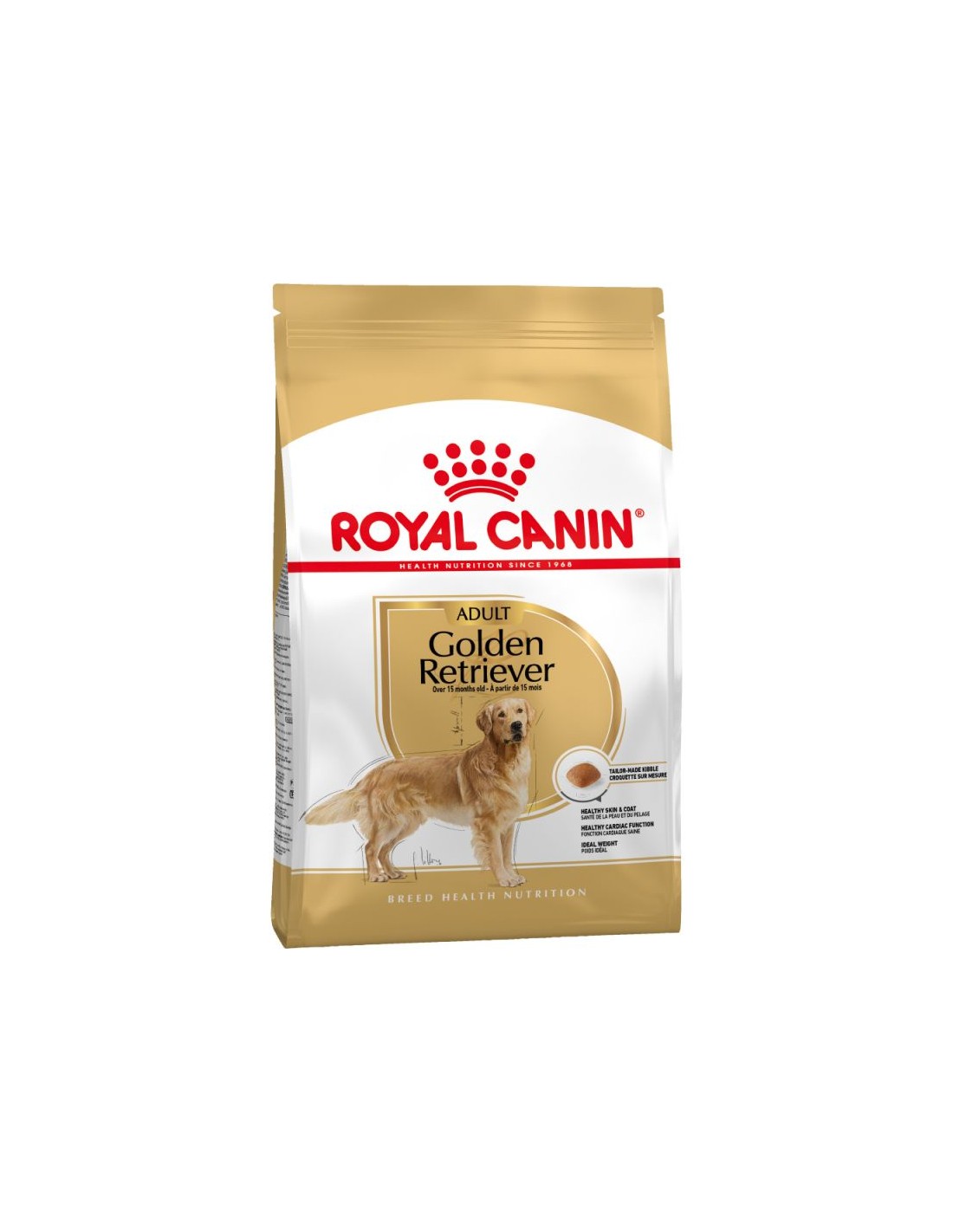 ROYAL CANIN Golden Retriever Adult est spécialement formulé pour répondre à tous les besoins de votre chien Golden Retriever adulte et convient aux chiens de plus de 15 mois.