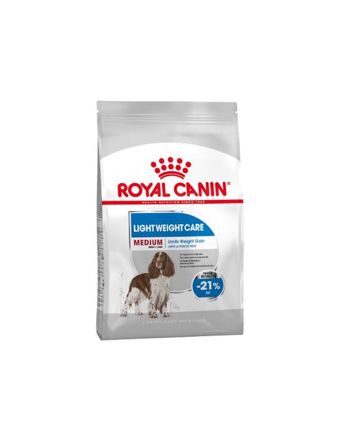 ROYAL CANIN LIGHT WEIGHT CARE Medium convient aux chiens pesants entre 11 et 25 kg. La nourriture aide votre chien à maintenir un poids santé. La formule exclusive contient des acides gras oméga-3, dont de l'EPA et du DHA, pour renforcer les articulations de votre chien. De plus, LIGHT WEIGHT CARE Medium a une faible teneur en matières grasses, ce qui peut aider votre chien à maintenir un poids idéal. ROYAL CANIN attache une grande importance à n'utiliser que des protéines de la plus haute qualité. LIGHT WIGHT CARE Medium est une délicieuse formule à haute teneur en protéines, qui peut favoriser la préservation de la masse musculaire. De plus, la meilleure combinaison de fibres alimentaires solubles et insolubles maintient votre chien rassasié et assure des selles régulières et une meilleure digestion.