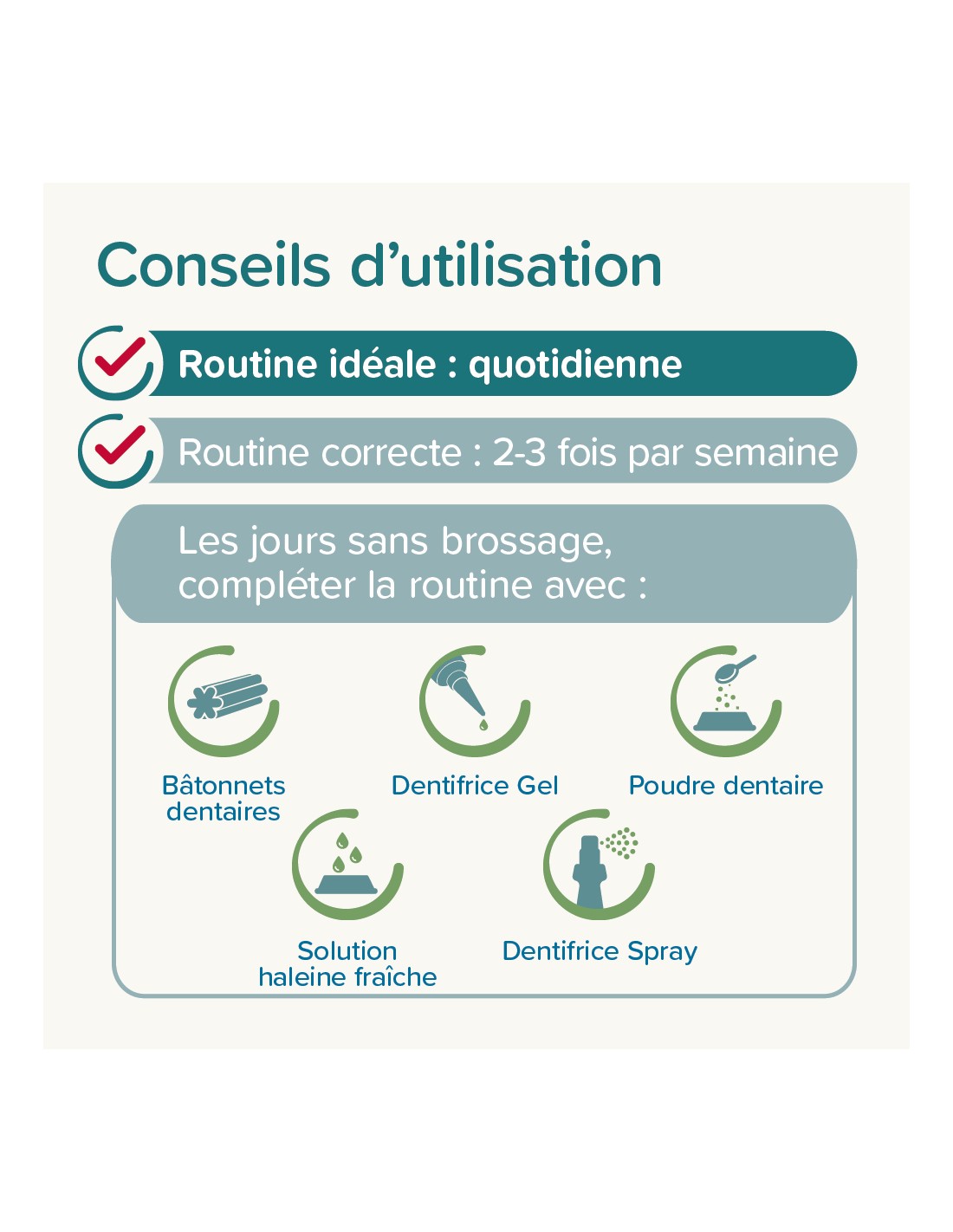 Associé à un brossage approprié, le dentifrice menthe & persil Beaphar aide à lutter contre la formation de plaque dentaire et de tartre et à réduire les bactéries dentaires. Un brossage régulier avec ce dentifrice contribue à une haleine fraîche et à une meilleure hygiène bucco-dentaire pour votre animal de compagnie. Le dentifrice a un agréable goût de menthe poivrée.