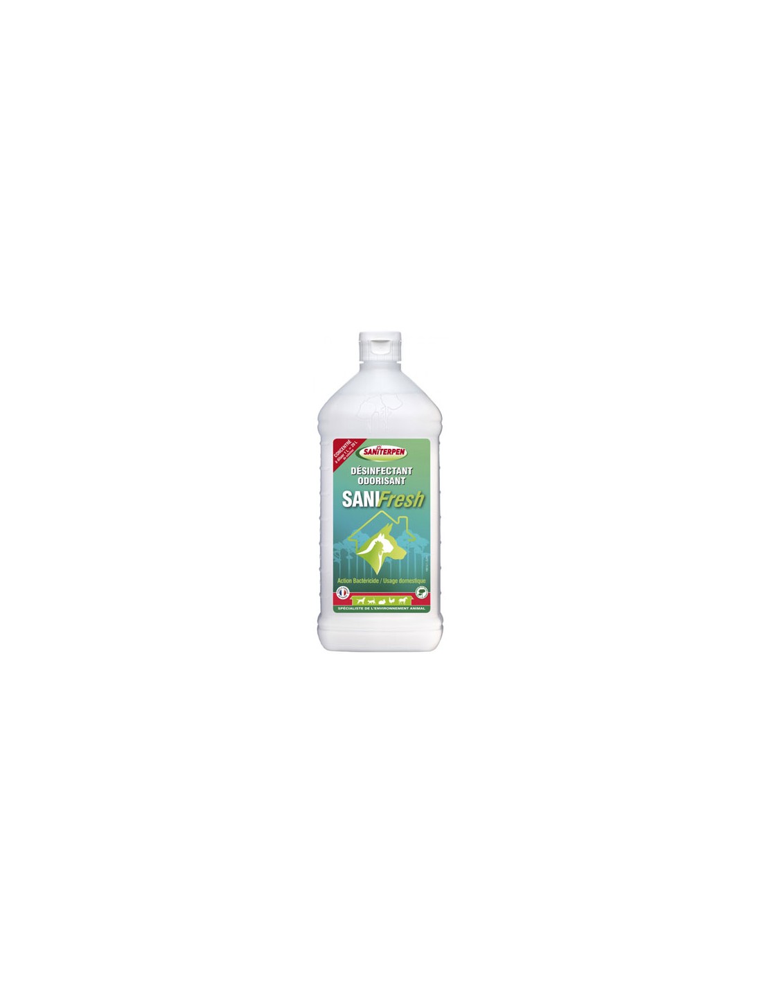SANITERPEN SANIFRESH désinfecte et odorise les sols et surfaces des lieux de vie des animaux (niches, clapiers, poulaillers,...) mais aussi des caves, garages, terrasses, réduits, sous-sols,...