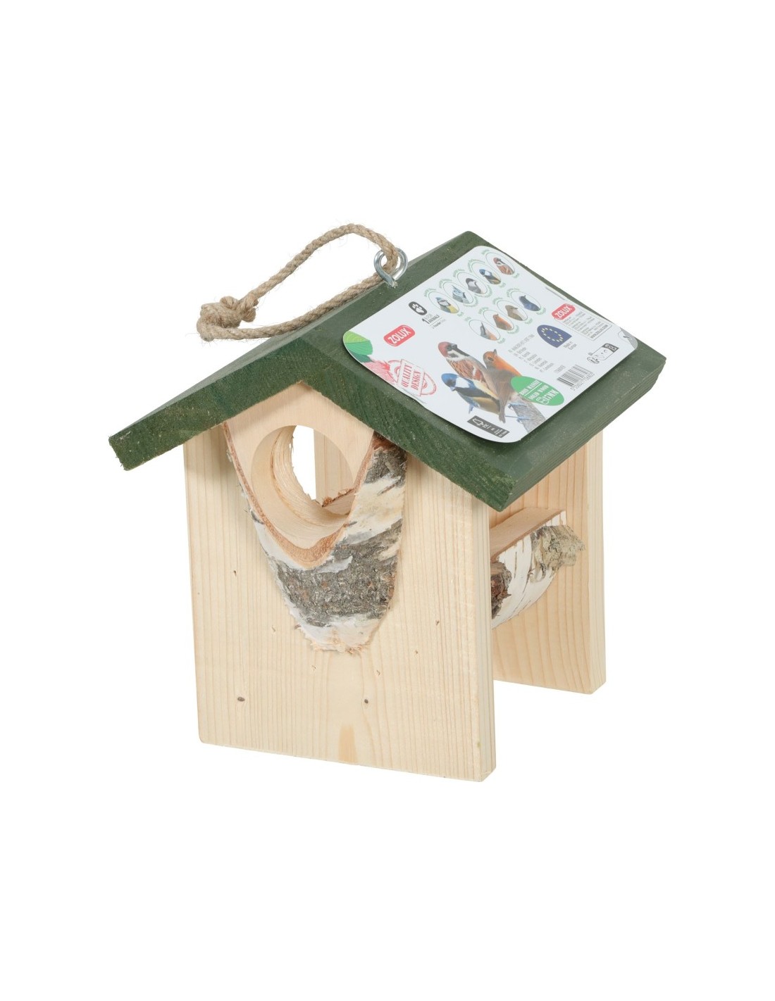 La mangeoire Zolux à un aspect bois naturel qui procure une ambiance boisée et rustique qui s’harmonise parfaitement avec un jardin ou une terrasse. Son toit est en bois massif d'une épaisseur de 17 mm.