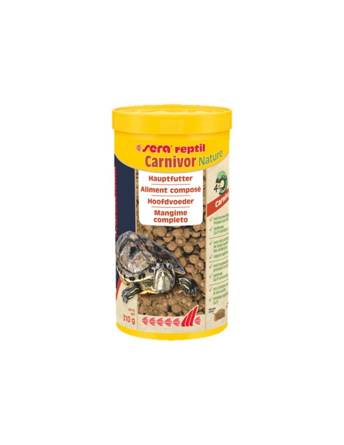 Sera reptil Professional Carnivor Nature est l’aliment composé sans colorant ni conservateur, composé d’un granulé flottant bicolore produit selon un procédé de coextrusion hautement fonctionnel pour tous les reptiles carnivores tels que les tortues aquatiques.