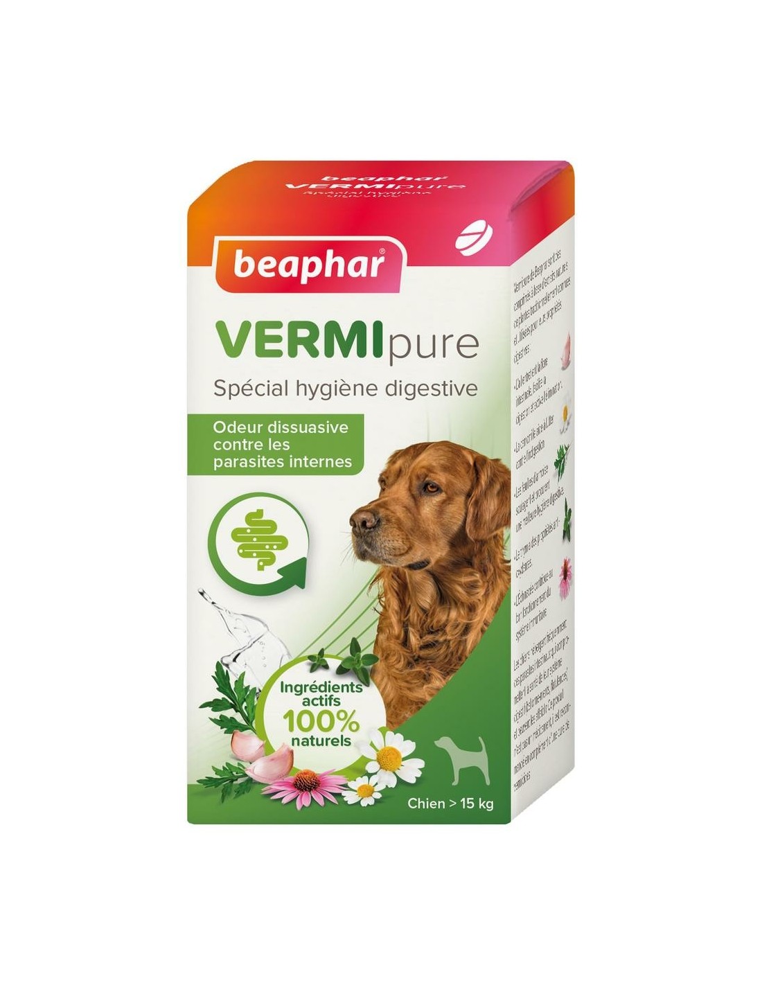 Les chiens hébergent régulièrement des parasites intestinaux qui les affaiblissent. Les comprimés purge de Beaphar contiennent des plantes traditionnellement utilisées pour favoriser l’expulsion des parasites intestinaux en rendant leur terrain hostile. Ces comprimés permettent d’améliorer les manifestations des états vermineux (diarrhées, ballonnements, flatulences, etc.) et procurent une meilleure hygiène digestive.