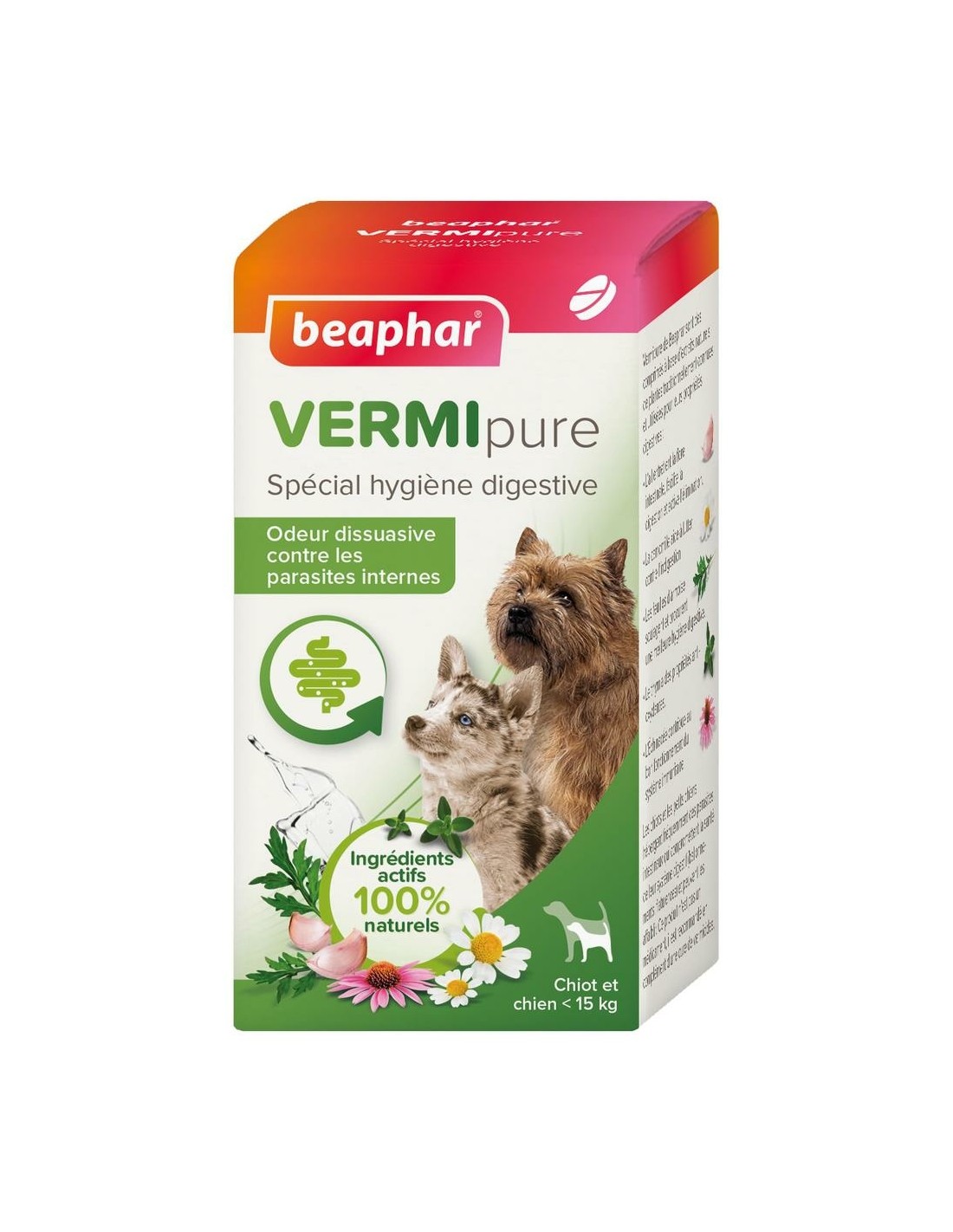 Les chiens hébergent régulièrement des parasites intestinaux qui les affaiblissent. Les comprimés purge de Beaphar contiennent des plantes traditionnellement utilisées pour favoriser l’expulsion des parasites intestinaux en rendant leur terrain hostile. Ces comprimés permettent d’améliorer les manifestations des états vermineux (diarrhées, ballonnements, flatulences, etc.) et procurent une meilleure hygiène digestive.